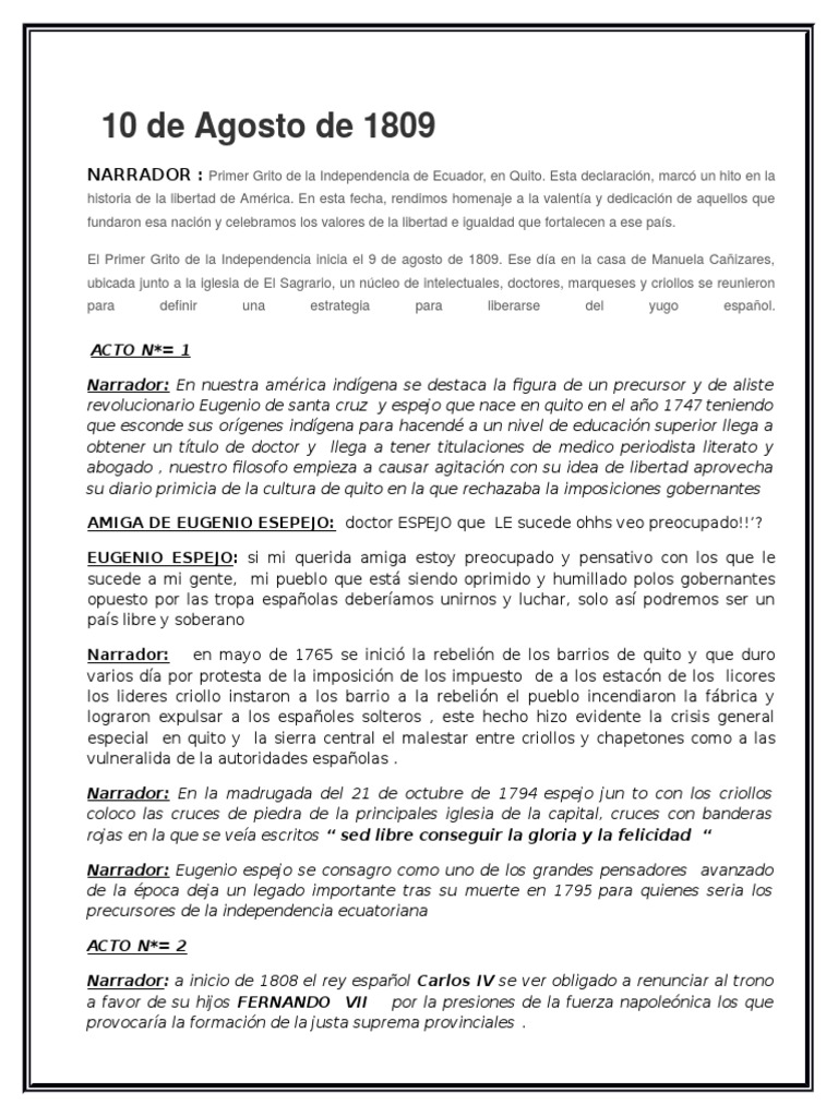 Discurso al Primer Grito de Independencia (10 de Agosto de ... from www.forosecuador.ec Check spelling or type a new query. 16 de agosto de 1809. Maybe you would like to learn more about one of these? We did not find results for: